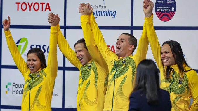 O Brasil encerrou a quarta, 24, com uma campanha histórica no Mundial de Natação Paralímpica, em Singapura. A delegação conquistou seis medalhas, incluindo dois ouros, três pratas e um bronze, além de quebrar um recorde mundial no revezamento misto.