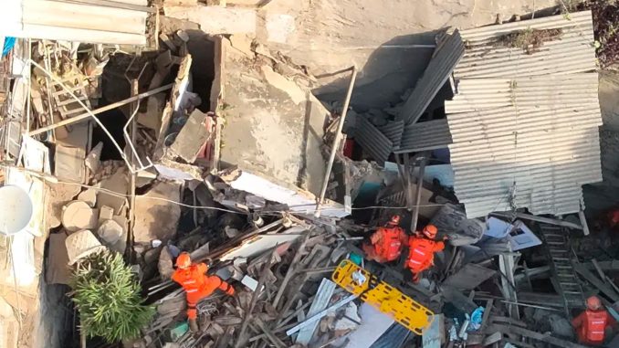 A operação utiliza cães farejadores e drones com câmeras térmicas para localizar sobreviventes entre os destroços. Moradores da região relataram forte estrondo e tremores no momento do desabamento.